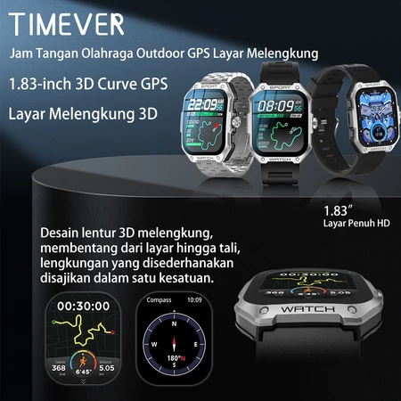 TIMEVER GPS Curve Smartwatch 1.83 Layar IPS Melengkung 3D Curve jam Tangan Smartwatch 1ATM Waterproof Compass Bluetooth